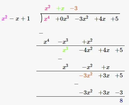 যিহেতু ইয়াত ভাগশেষ শূণ্য নহয় গতিকে প্ৰথম বহুপদটো দ্বিতীয় বহুপদটোৰ এটা উৎপাদক নহয়।