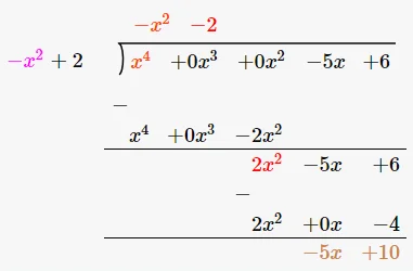 ভাজক= p(x) =x4 – 5x + 6 = x4 +0x2–5x+6