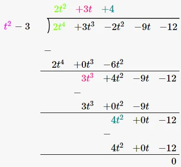 দ্বিতীয় বহুপদ= 2t4 +3t3-2t2 -9t-12