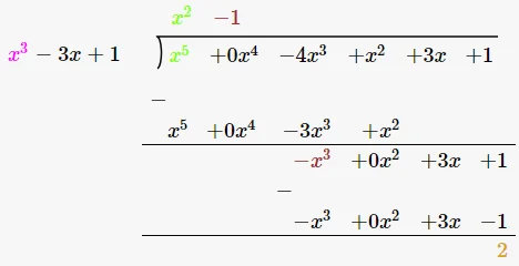 2. দ্বিতীয় বহুপদটোক প্ৰথম বহুপদেৰে হৰণ কৰি প্ৰথম বহুপদটো দ্বিতীয় বহুপটোৰ এটা উৎপাদক হয়নে নহয় পৰীক্ষা কৰা।